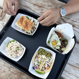 Loco moco was a trip to Flavor Town! Fish tacos were fresh and spicy . Mango lemonade was a perfect pairing for the whole meal. The seating next to the water was very relaxing yet crowded.